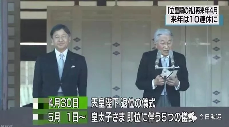 “平成”谢幕,“令和”登场——由于日本在4月30日、5月1日举行隆重的老天皇退位、新天皇即位仪式,加上传统的4月末5月初日本传统“黄金周”休假,因此日本将马上迎来“十连休”。