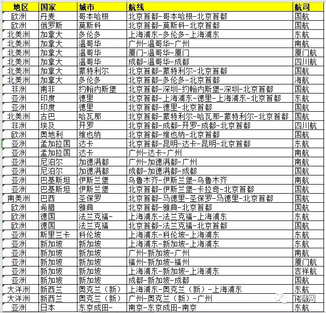 一、以民航局3月12日官网发布的“国际航班信息发布(第5期) ”为基准,国内每家航空公司经营至任一国家的航线只能保留1条,且每条航线每周运营班次不得超过1班;外国每家航空公司经营至我国的航线只能保留1条,且每周运营班次不得超过1班。